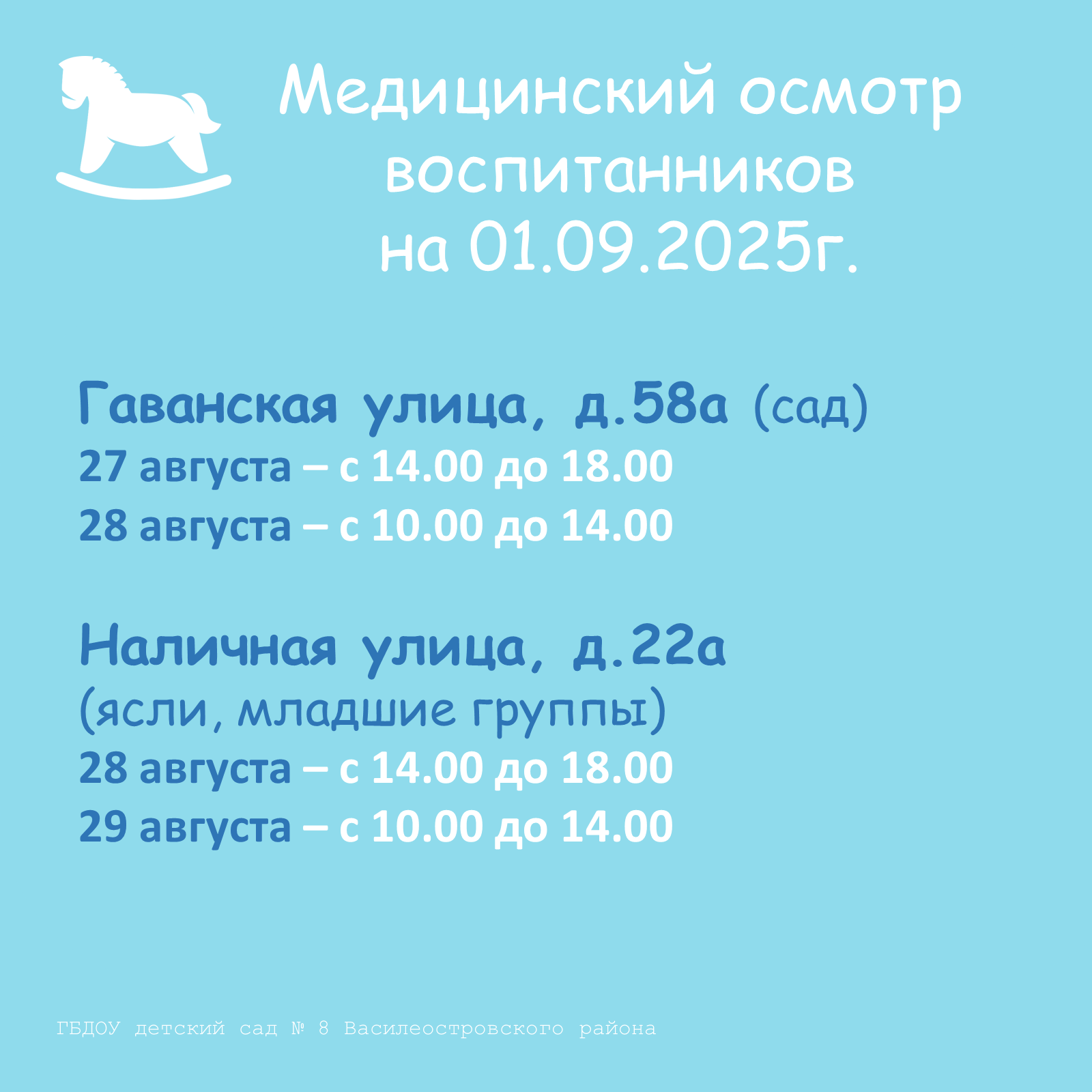 Уважаемые родители! Информируем Вас, с графиком медицинского осмотра воспитанников на 01.09.2025: